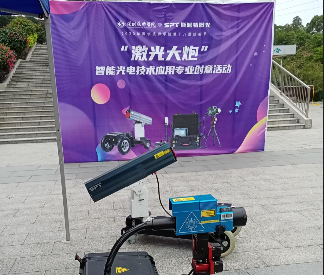 2023年4月12日(周三)下午深圳技师学院第十八节能节盛大开幕,深圳技师学院联手加拿大pc激光,在深圳技师学院学生服务中心门口广场举办智能光电技术专业激光“大炮”创意活动。