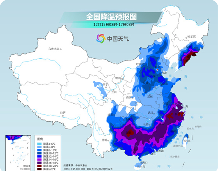 12月16日至17日,强寒潮将影响我国中东部大部地区,华北、黄淮北部等地的部分地区最低气温将接近或跌破历史同期极值,南方将现冷暖大逆转,江南等地不少地方气温将累计下降20℃左右,请各位注意添衣,谨防感冒。