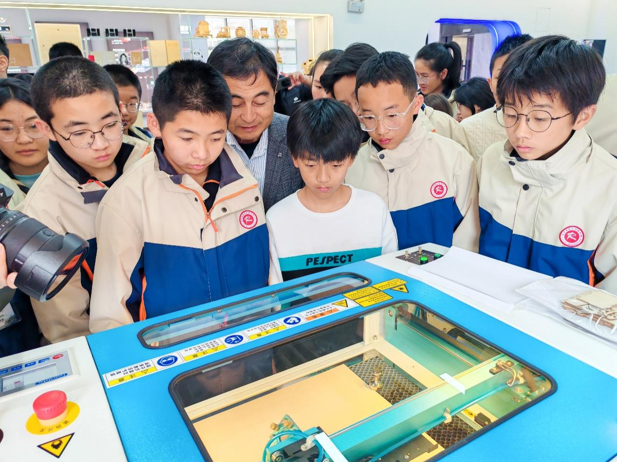 现场操作环节中,工作人员展示了激光打标与切割的全过程。随着一缕缕青烟升起,一幅精致的《清明上河图》在纸张上被激光一点点“刻”出,引来孩子们阵阵惊叹。他们围拢在切割机旁,目睹木板被精准无误地分割成拼图零件,对激光加工的速度与精度,有了更为直观和深刻的体会。