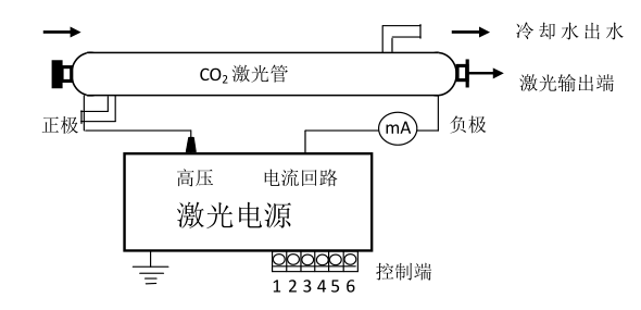 激光电源的电、回路通过电流表(或直接)与二氧化碳激光管的阴极(激光输出端)相连。